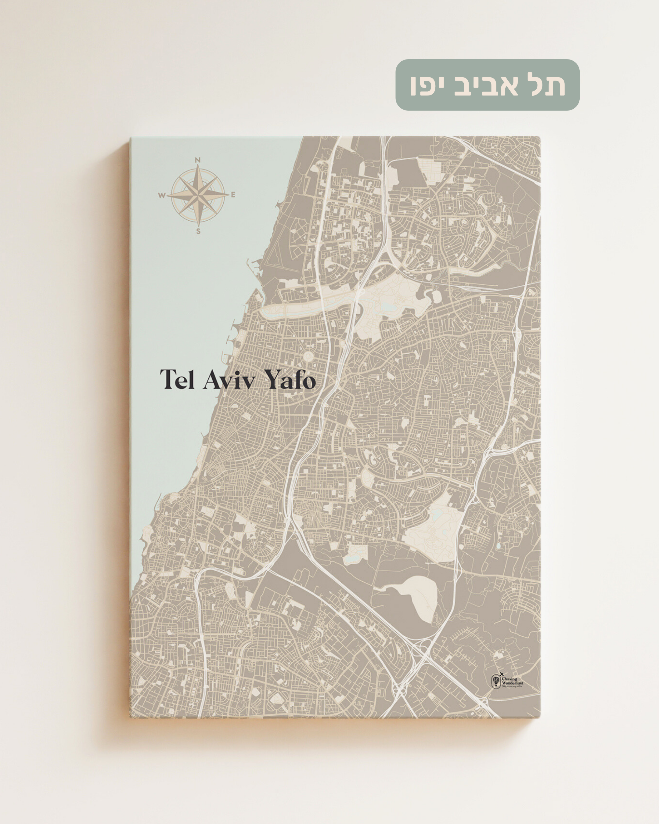 אנחנו מדפיסים על קנבס איכותי, מותחים על מסגרת עץ ומביאים את המפה עד הבית במשלוח חינם.