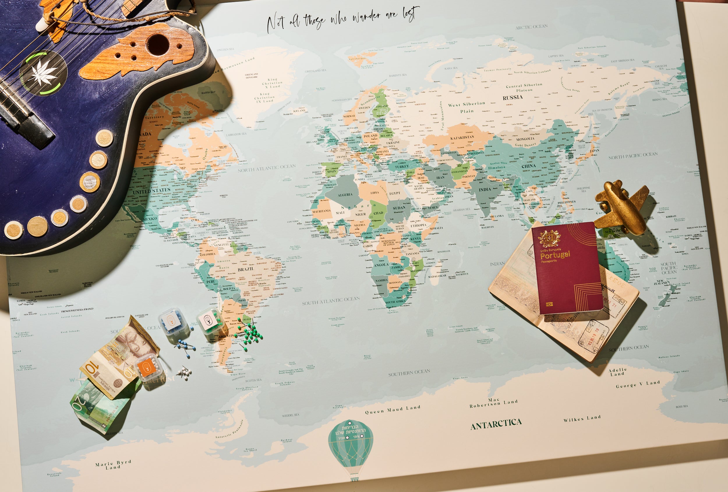 מפות ננעצות– בגודל 70×50 ס"מ, עם קופסת נעצים צבעוניים + סט תוויות לכתיבת תאריכים וציוני דרך. כך תוכלו לסמן לא רק את המקומות שביקרתם בהם, אלא גם את הרגעים שהפכו את המסע לבלתי נשכח.